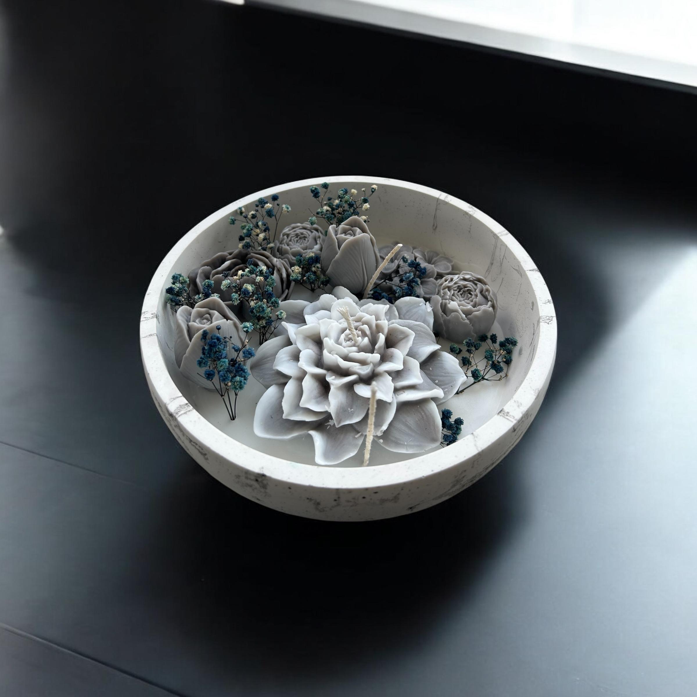 Büyük Kase Gri Renkli Çiçek Tasarımı