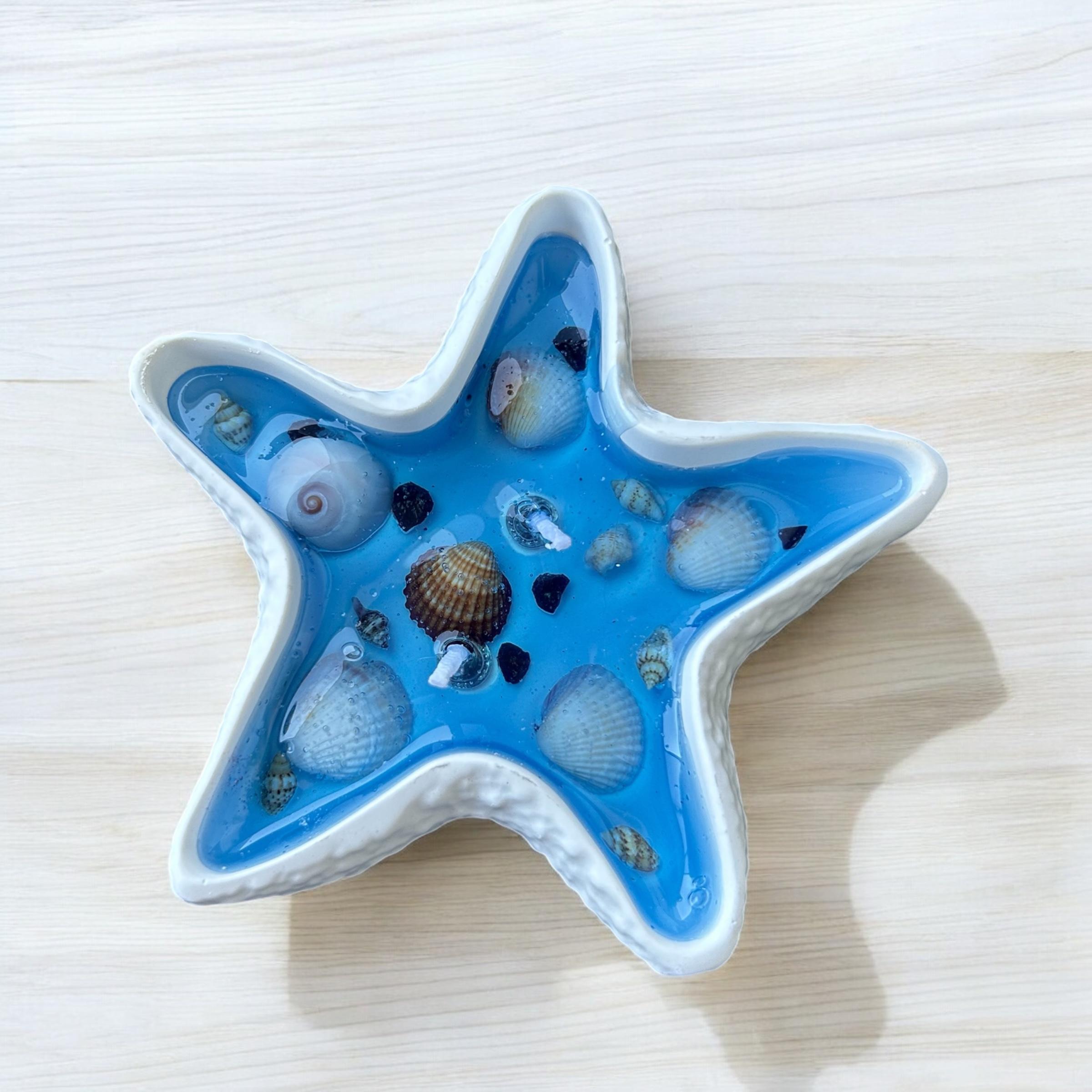 - Renk: Şeffaf jel içerisine yerleştirilmiş doğal deniz yıldızı ve mavi tonlarda renkler.
