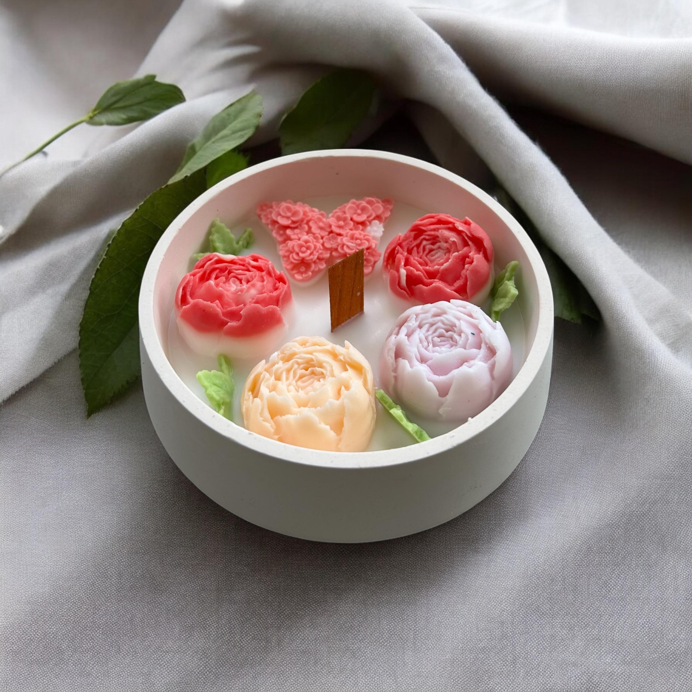 Ev dekorasyonunuza zarif bir dokunuş katacak olan Mini Kase Tomurcuk Çiçekli Mum, hem şık görünümü hem de harika kokusuyla herkesin beğenisini kazanacak. Bu özel tasarlanmış mum, doğal bitkisel yağlardan imal edilmiştir ve el yapımı olarak üretilmiştir, böylece her bir parça benzersizdir.