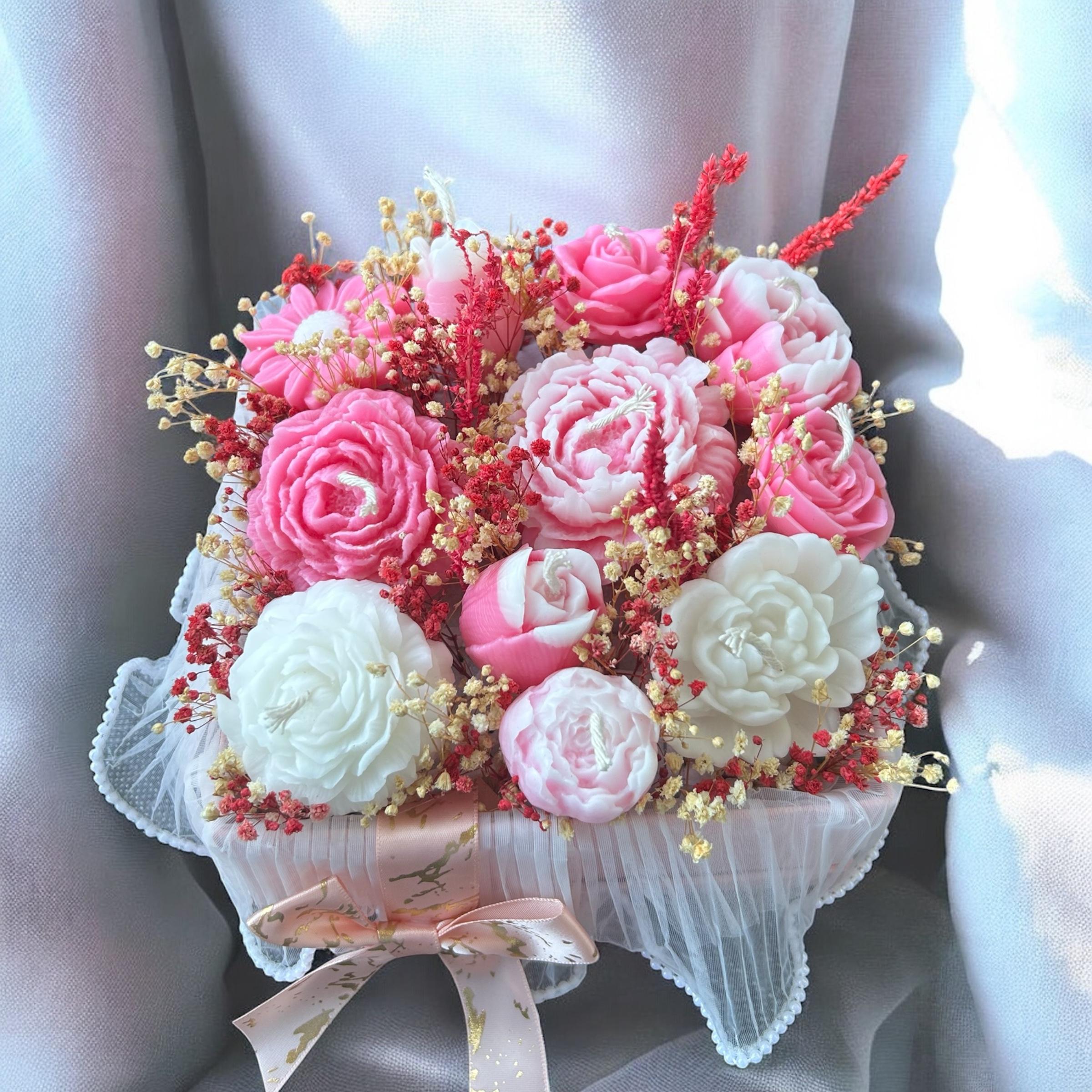 Sevgi ve zarafetin mükemmel bir ifadesi olan Pembe Çiçekli Buket Tasarım Mum, her ortama estetik bir dokunuş katmak için tasarlandı. Bu benzersiz ürün, sadece görsel güzelliği ile değil, aynı zamanda sunduğu hoş aromalarla da ruhunuzu dinlendirir ve evinize huzur getirir.